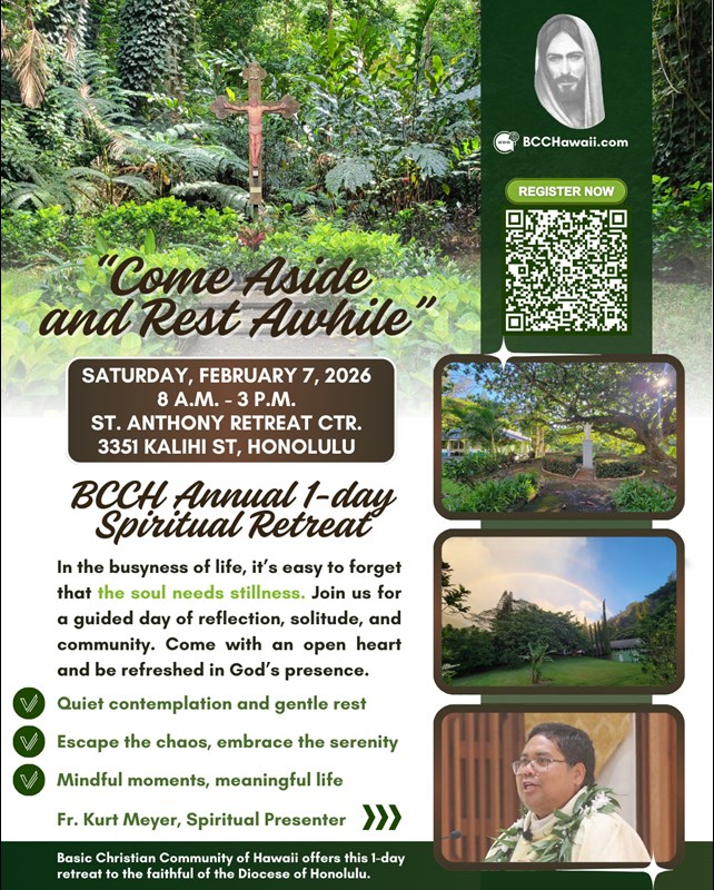 Register at https://www.eventbrite.com/e/basic-christian-community-of-hawaii-adult-spiritual-retreat-feb-7-2026-registration-1979300083832
