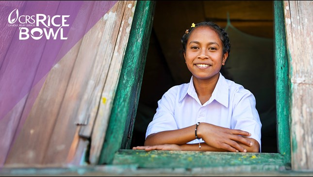 One way of to do this in Lent is through the Catholic Relief Services Rice Bowl. Through CRS Rice Bowl, communities around the world receive the tools and knowledge they need to nourish their families and strengthen their futures. In the previously war torn Southeast Asian country of Timor-Leste, a young girl named Adriana sits with other students learning something simple—but life-changing. Through nutrition and health classes supported by CRS, Adriana and her classmates are discovering how the food they eat affects their bodies, their growth, and their future.
