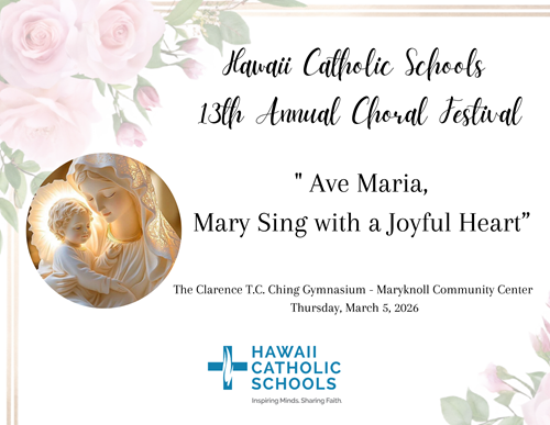 #ICYMI Watch the 2026 Choral Festival on our Hawaii Catholic Schools YouTube Channel. The event took place on Thursday, March 5th in the Clarence T.C. Ching Gymnasium at Maryknoll School to commemorate “Music In Our Schools” month. This year's Choral Festival themed “Ave Maria, Mary Sing With a Joyful Heart” wouldn't be possible without all the schools, choir directors (pictured below), choir performers, Maryknoll School, and Unity AV Services. Mahalo for your help and participation in making this event a success!